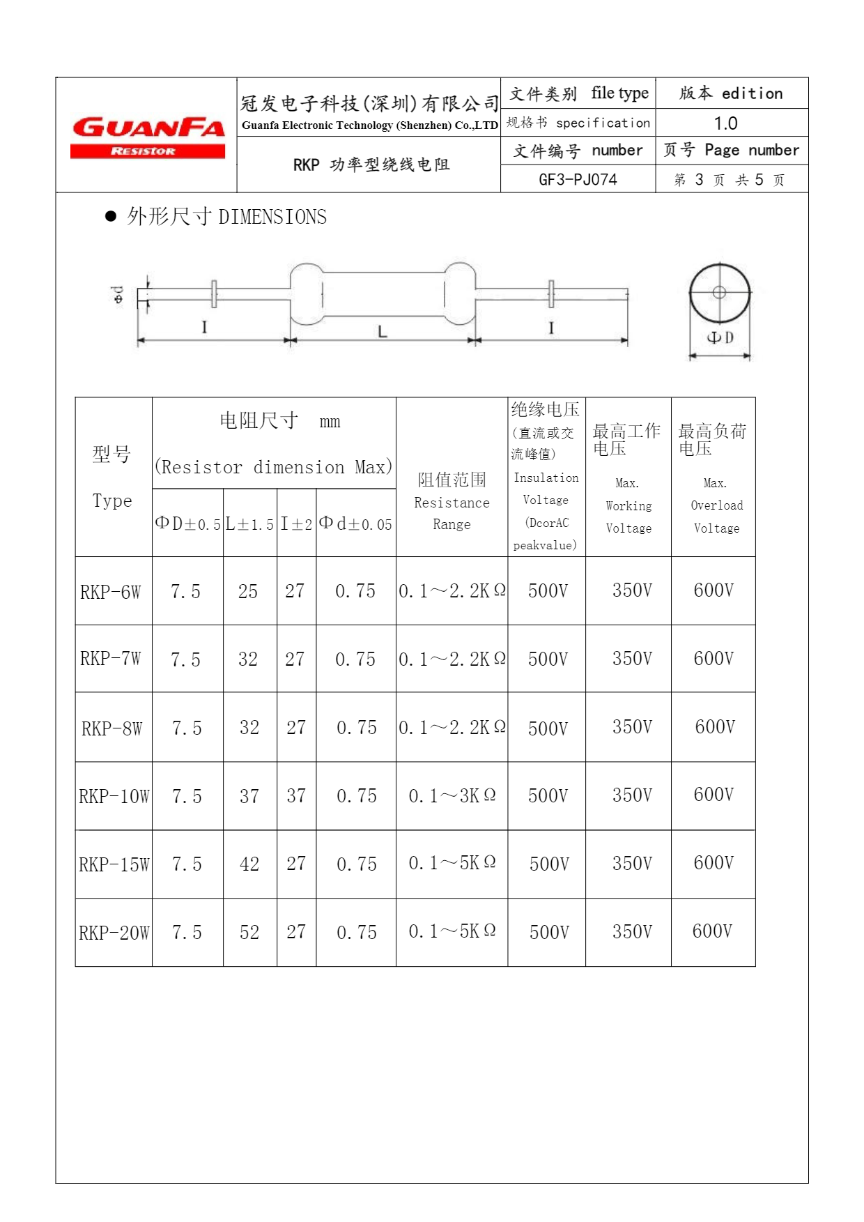 备注:阻值范围会因功率不同而有所变动,图册均标示我司可供应范围,特殊需求详情请洽询冠发科技