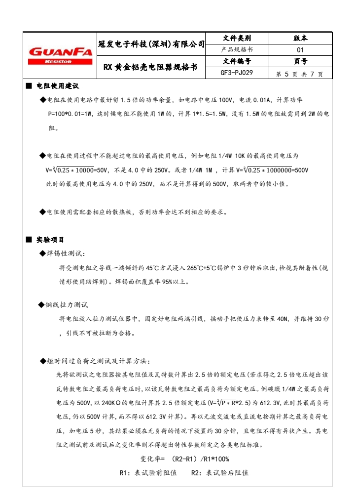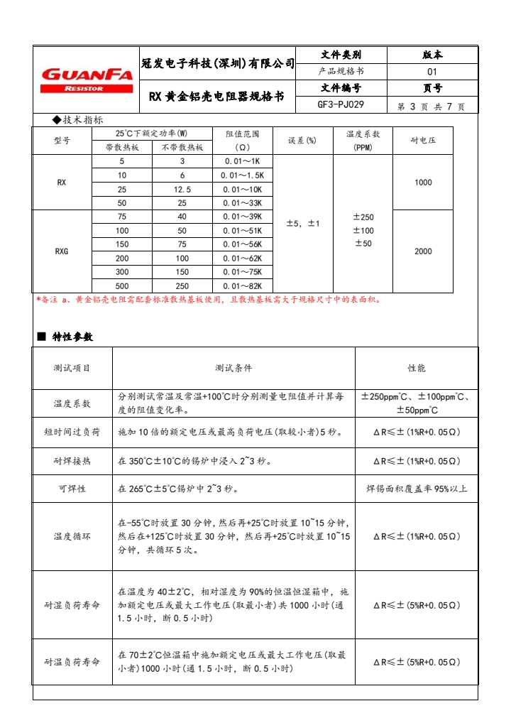 备注:阻值范围会因功率不同而有所变动,图册均标示我司可供应范围,特殊需求详情请洽询冠发科技